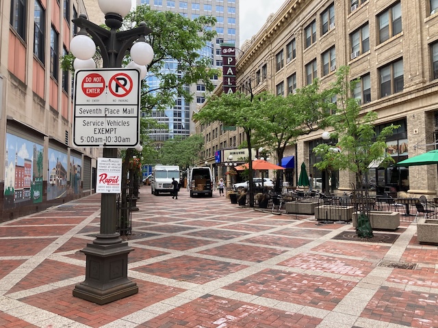 Along the cobblestones in front of Meritage by St. Peter Street.