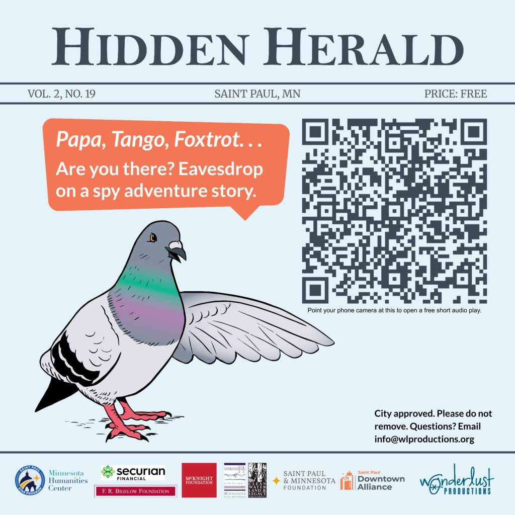 Wonderlust Productions is excited to release the second season of Hidden Herald on July 11th. Accessible via QR code on the streets of St. Paul, Hidden Herald tells the hidden stories of the city. Did you know there’s a dragon in Lake Phalen? A spaceship hovering above Union Depot? Who IS the MPR Raccoon really?
